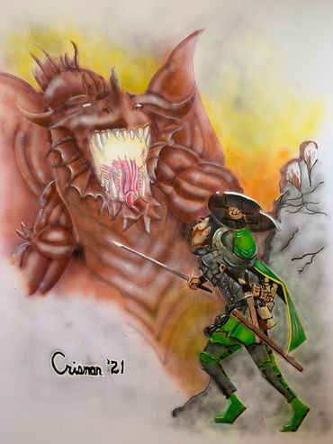 Welcome to my online airbrush portfolio! My passion for classic art has driven me to create new pieces using airbrush and pinstripe skills. Although there is a battle between brush and airbrush artists regarding technique, I have found the airbrush is a great way to express oneself in art. Airbrush art was a huge part of my teens. I'm just starting with airbrush but enjoy it immensely. Below are my first attempts, and the product of a class I took with world renowned air brush artist Dru Blair.